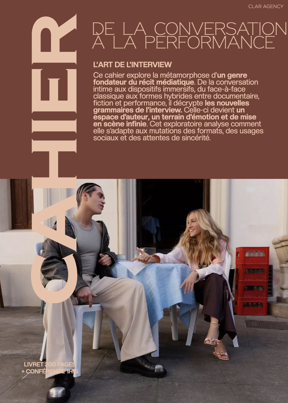 Clar est née au sein des rédactions, des studios et des salles de conférence. Cette culture média irrigue tous nos savoir-faire : prospective, stratégie, communication comme création. Elle nous permet de penser les marques comme des écosystèmes éditoriaux, ancrés dans les récits et les usages contemporains.